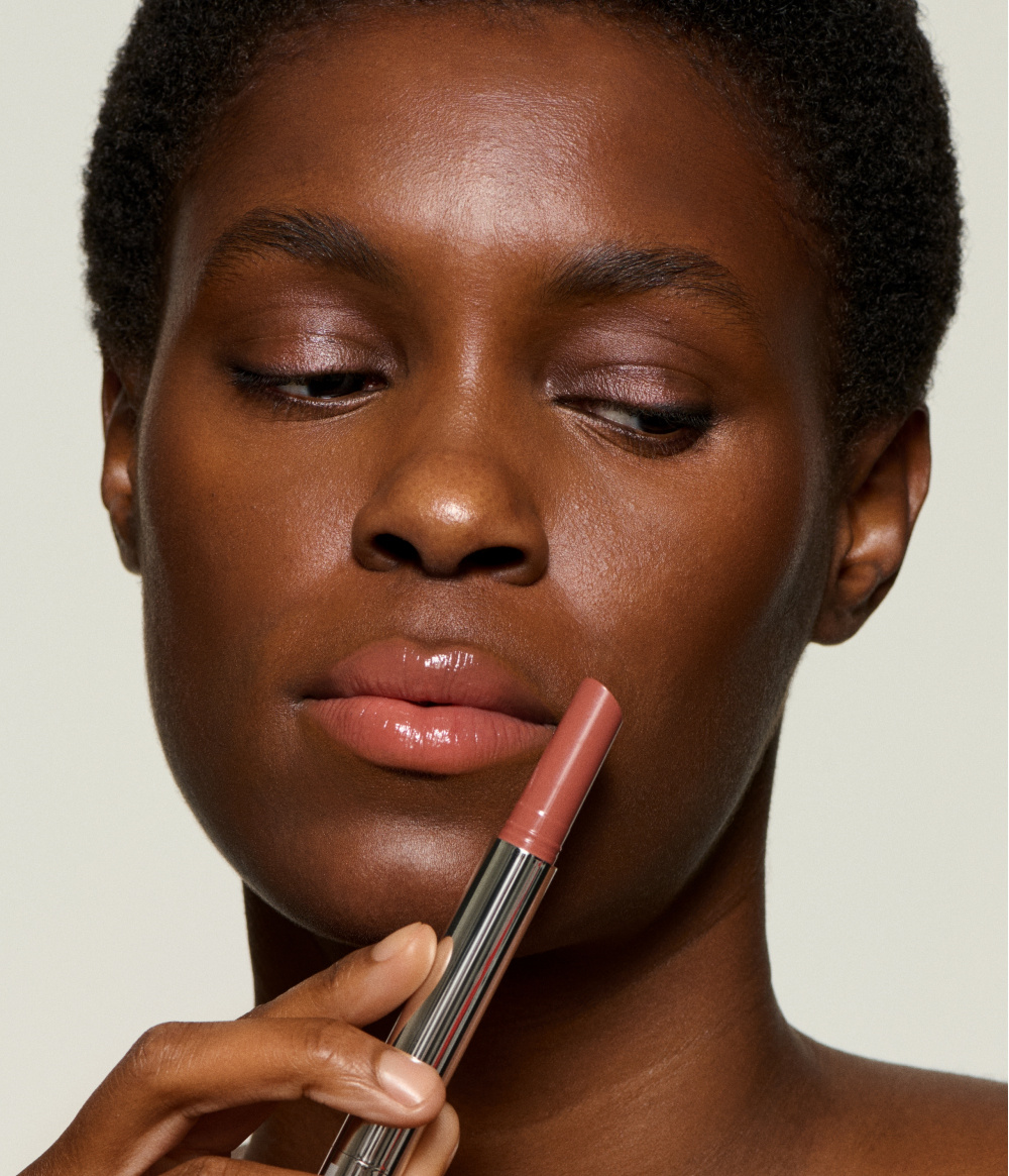 Draai aan de applicator om de vaste glaze-formule aan te brengen, alleen of in combinatie met een lipliner voor extra definitie. Bijpassende lippotloden: Bryce & Velvet Brown.